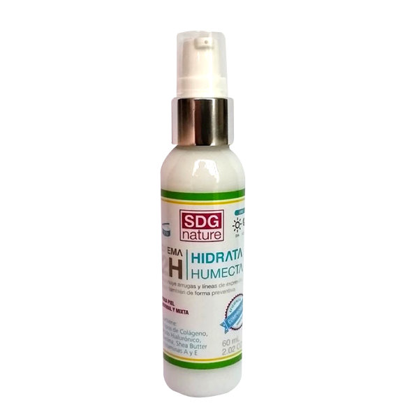 Crema 2H formulada con 2 tipos de Colágeno, ácido hialurónico, elastina, shea Butter y con vitaminas A , E. Humecta, hidrata, nutre y minimiza y previene lineas de expresión.